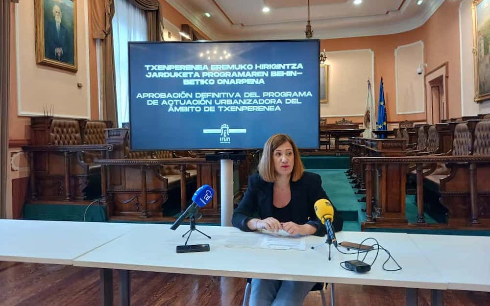 Cristina Laborda, Txenperenearen proiektuaren aurkezpeneanñ Txenperenea eremuko hirigintza jarduketako programari behin betiko onarpena eman dio Irungo Udalak. Hasierako onarpena martxoan iragarri zuten, eta orain, kontrako alegazioak ebatzi ondoren, aurrera pausoa zehaztu dute. Lehen pausoa da programa, ondoren birpartzelazio proiektua gauzatu beharko dute, eta azkenik, urbanizazio proiektua. Plaiaundiko kirol instalazioak Txenpereneara mugituko dituzte, eta horrez gain 850 etxebizitza eraikiko dira, haien %78a publikoak.