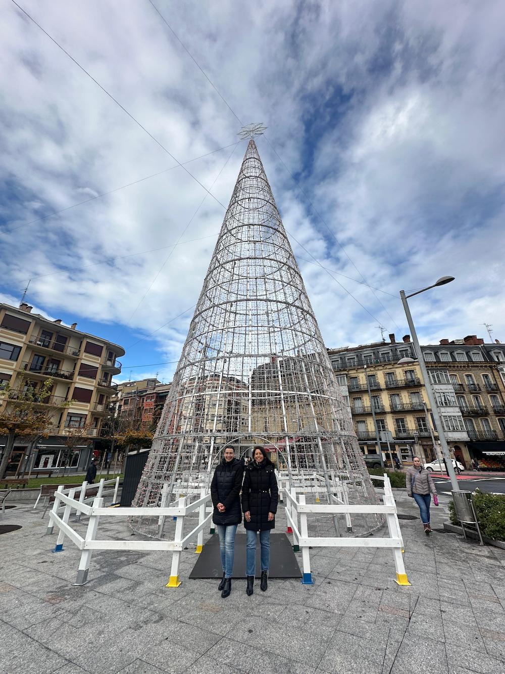 Nuria Alzaga eta Azahara Dominguez Jenaro Etxeandia plazan.Irungo Udala Jenaro Etxeandia plazako gabonetako zuhaitza eguberrietako berritasun nagusia izango da. Ostiral honetan, hilaren 5ean, argi jokoaren lehenengo proiekzioa egingo dute, 19:00etan. Zuhaitza erraldoia da, eta LED argiak eta proiekzio dinamikoak ditu. Gainera, jai hauetarako propio ondutako soinu-banda batek lagunduta egingo dute argi jokoa. Plaza goitik behera eraldatuko du eta merkataritzaren dinamizatzailea izango da.