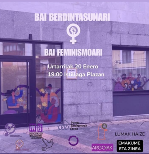 19:00etarako deitu dute mobilizazioa, Istillaga plazan, 'Bai berdintasunari, bai feminismoari' lelopean.