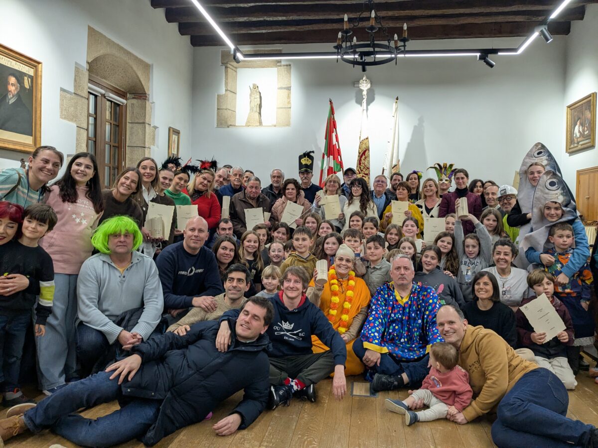 Urtero moduan, udaletxeko areto nagusian egin zuten sari banaketa, eta bertan izan ziren desfile parte hartzaile guztiak.