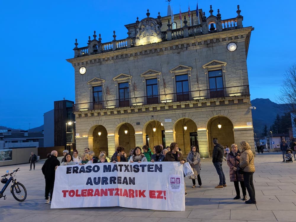 Elkarretaratze isila egin zuten udaletxe aurrean, eta 20 minutuko isilunea egin zuten Eraso matxisten aurrean, tolerantziarik ez! lelopean. Sarrigurengo kasua 2026. urteko indarkeria matxista lehen kasua izan da. Kontaketa ofiziala egiten dutenetik, 2003. urtetik, 133 emakumeren eta hamahiru haurren hilketa matxista izan dira Euskal Herrian.