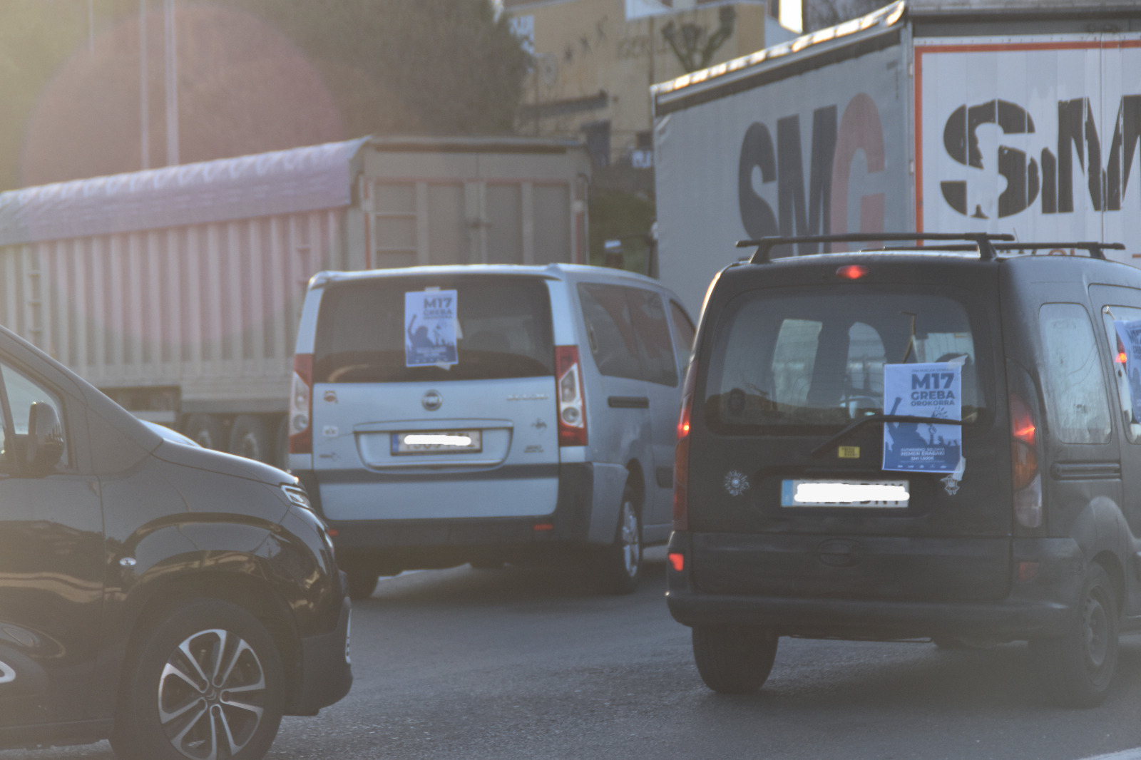 07:00ak pasata hainbat auto karabana abiatu dira Mamutetik (Oiartzun), Antxoko Luzuriagatik, Irungo Galetik, eta Hondarribiko Eroskitik. Horietan bildu diren autoekin eguna girotzeaz gainera, blokeoak ere egiten ari dira trafikoa oztopatuz.