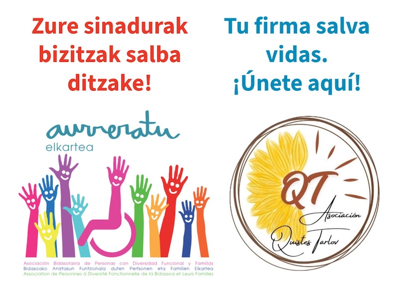 Larunbatean, hilak 11, Aurreratu eta Quistes Tarlov elkarteek sinadura bilketa egingo dute Urdanibia plazan, 09:00tatik 14:00tara.