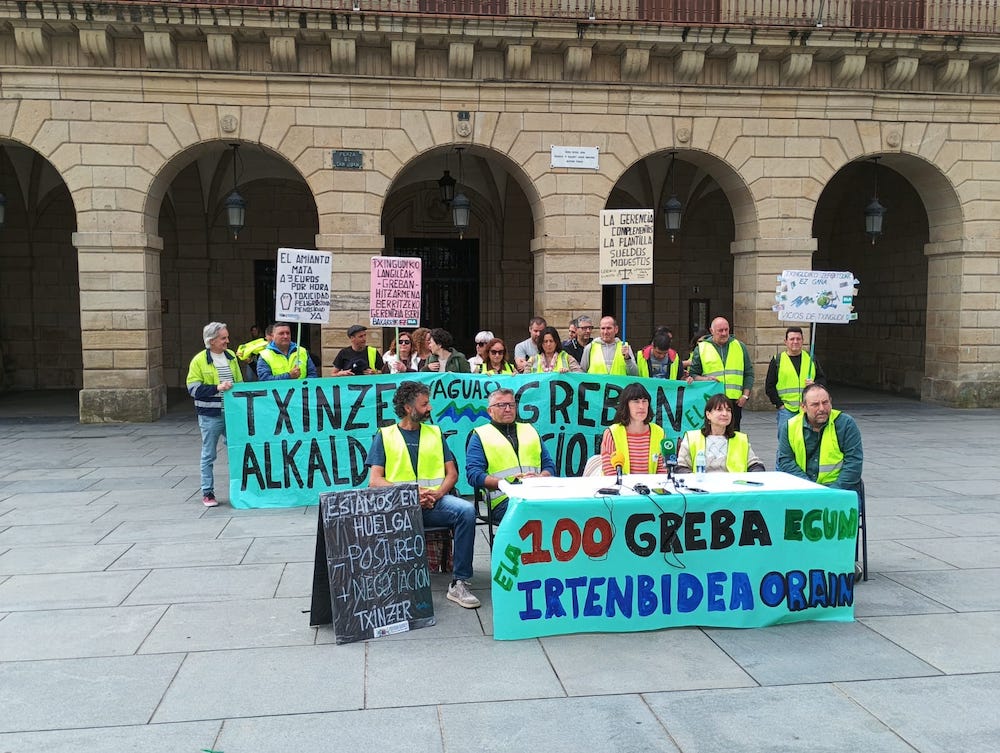 Aste honetan 100 egun bete dituzte greban Txingudiko Zerbitzuak enpresa publikoko langileek. Euren lan baldintzak hobetzeko negoziazioak etenda daudela salatu dute.