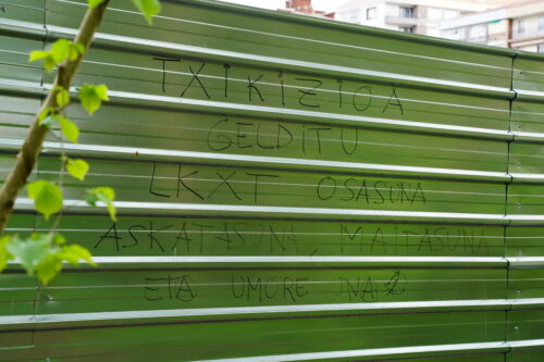 Obrak egiteko eremua garbitu behar izan dute, eta gaztetxearen inguruko zuhaitzak moztu behar izan dituzte. «Zuhaitzen afera aspalditik gertatuko zela bagenekien, baina ez genekien noiz eta nola izango zen», kontatu du Santosek. Gaztetxeak beti izan duen eremu berdea eta zabala «goitik behera» aldatu dute azkenaldian. «Beti esan digute eremua Plaiaundiko kirol instalazioen aldetik hasiko zituztela, baina egun batetik bestera Lakaxita ondotik hasi zituzten obrak», dio Etxabek.