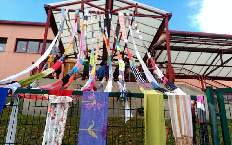 bezperan egin zuten, Kasino Zaharrean. Baina ez zen bakarra izan. Esaterako, Talaia eskolako Lehen Hezkuntzako ikasleek ere bat egin zuten Mataza Solidarioak nazioarteko ekintzarekin, eta ostiralean elkartasun bufandez apaindu zituzten Biteri eta Bordari (irudian) ikastetxeetako kanpoaldeak.