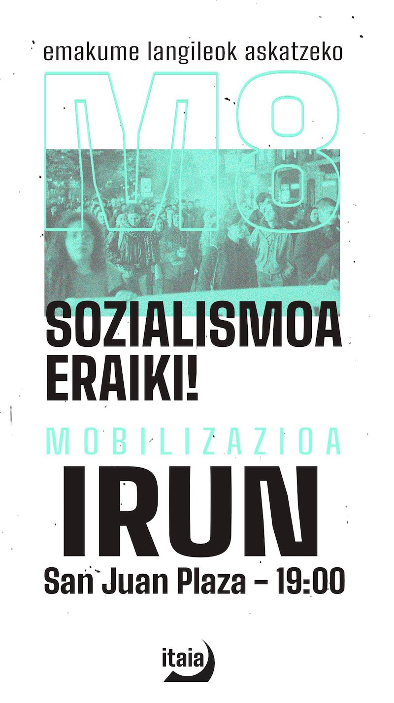 Itaia Emakume Sozialisten Antolakundeak elkarretaratzea deitu du San Juan plazan, 19:00etan, Martxoaren 8aren harira. ‘Emakume langileok askatzeko sozialismoa eraiki’ lelopean bilduko dira.