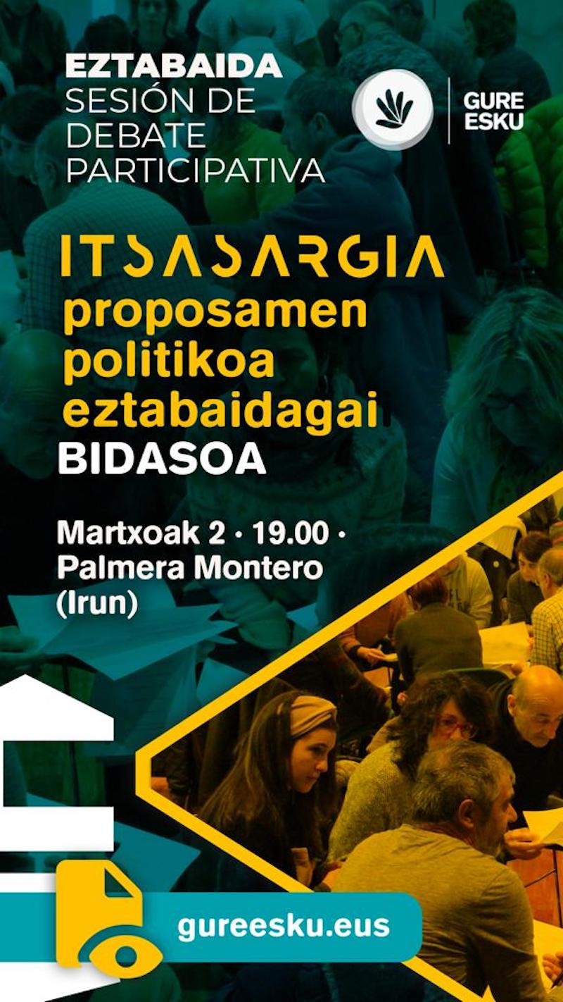 Gure Eskuk hamar urte egingo ditu ekainean, eta etorkizunera begira jarriko dira. Norabide hori adosteko asmoz, eztabaida herritarrak antolatu dituzte. Irunen martxoaren 2an izango da, 19:00etan, Palmera Monteron. Herritarrei bertaratzeko deia luzatu diete mugimenduko kideek.