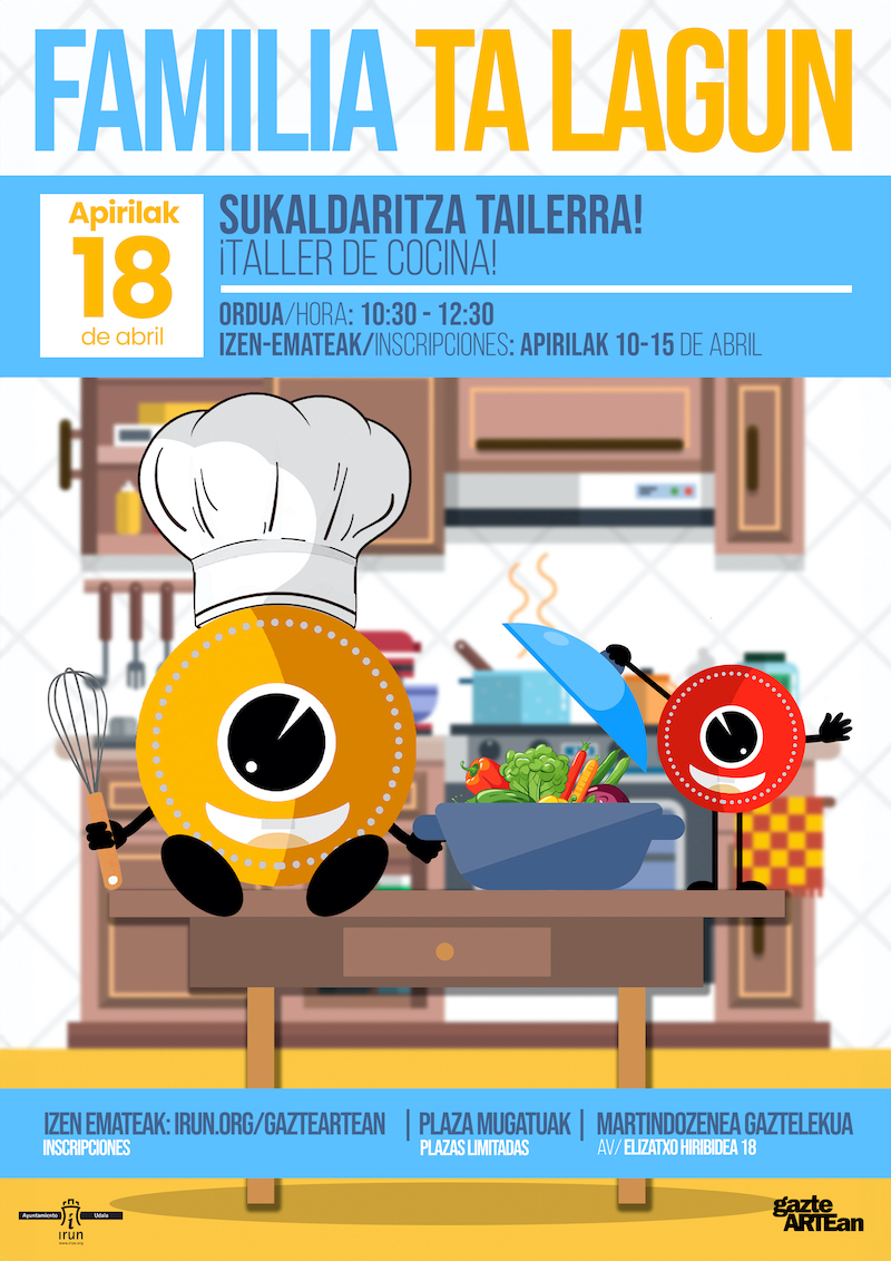Familia eta lagun programaren baitan, sukaldaritza tailerra antolatuko dute 4 eta 11 urte bitarteko haurrentzat. Izen ematea apirilaren 15era bitarte egin beharko da udal webgunean.