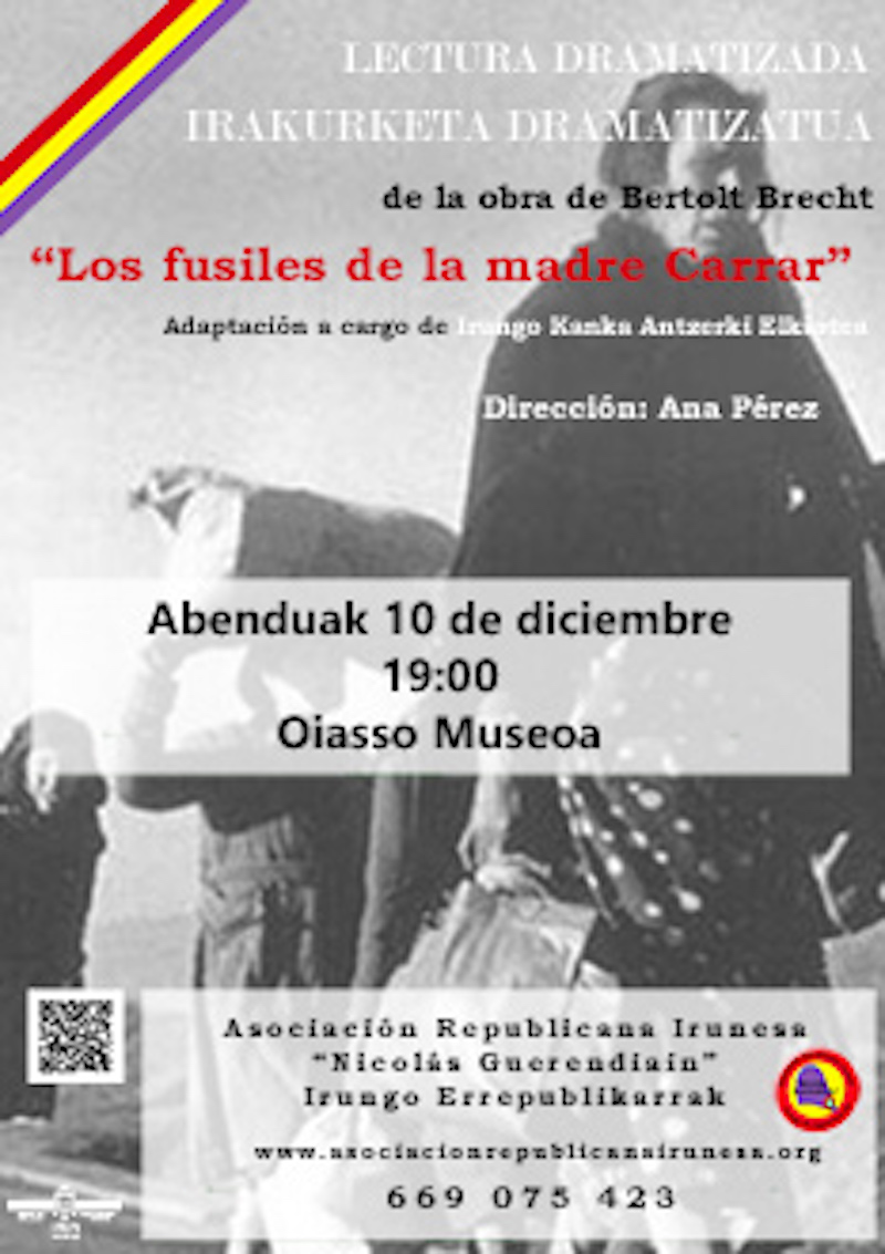 Nicolas Guerendiain Irungo Errepublikarrak elkarteak antolatuta, Los fusiles de la madre Carrar liburuaren irakurketa dramatizatua egingo da abenduaren 10ean, 19:00etan, Oiasso Erromatar Museoan.
