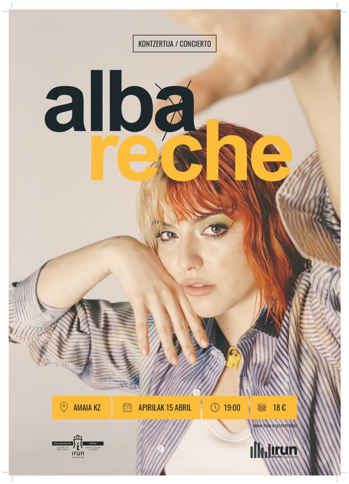 Sarrerak Irungo udalaren sarrerak lortzeko plataforman eskura daitezke 18 euroan. Bere estreinako albumaren arrakastaren ondoren, ‘(2019), Alba Reche poparen barruan kantautore bezala sagaratu zen, 2021 honetan argitaratu duen’ hazi txikia ‘diskoa argitaratuz. Bere ahotsa eta hitzak egungo poparen panoramaren barruan bere proposamen artistikoaren ezaugarri den zigilu pertsonal batek markatzen ditu, abesti bakoitzarekin talentua, lasaitasuna eta sentsibilitatea transmitituz 2022ko udazkenerako, Alba Reche EP berri batekin itzuliko da, zintzoki tristea dena, tristura sentimenduan arakatu eta diluitzeko besarkatzen duena. Egunerokotasunez eta barne-bakarrizketaz betetako lana. Kontraesanak, amorrua, desamodioa eta negarrak daude.