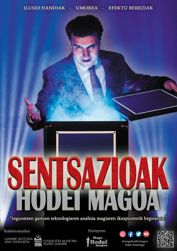 Sentsazioak ikuskizuna ziber-segurtasun, teknologiaren erabilera eta gizartean daukan eraginari buruz eztabaidatzeko balioko duen magia ikuskizuna da. Hodei magoaren eskutik.