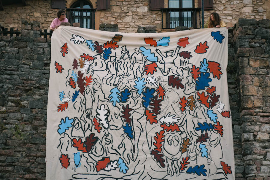 Herriko eskolekin batera tximeletak jarri dituzte Emekiko kideek Martxoak 8 plazan, tximeleta ahizpak oroitarazteko xedearekin.
